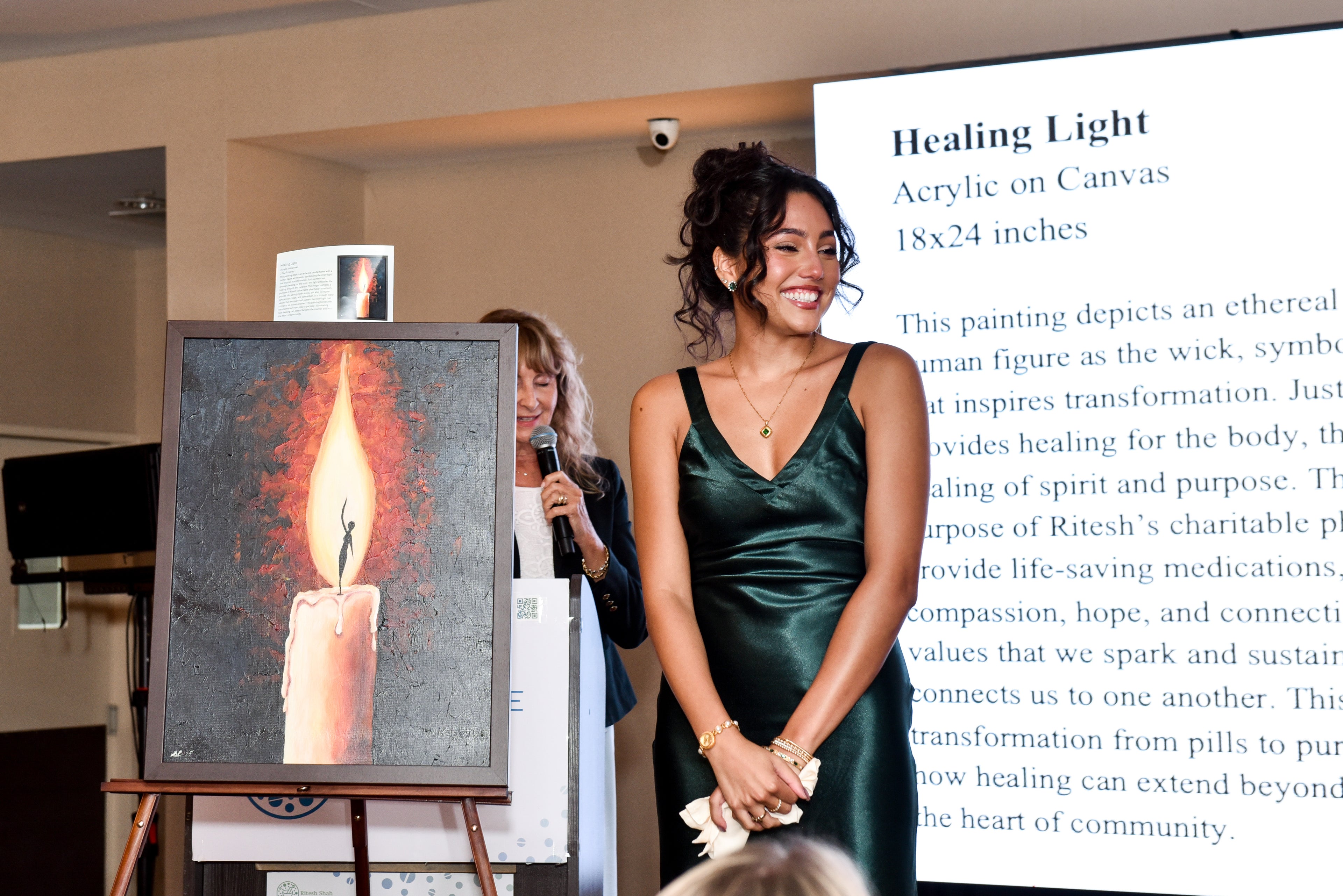 Serena donated two original paintings to the Ritesh Shah Charitable Pharmacy Gala, with all proceeds directly supporting families in need of life-saving medications. The art was auctioned at the event, raising thousands of dollars for the cause.